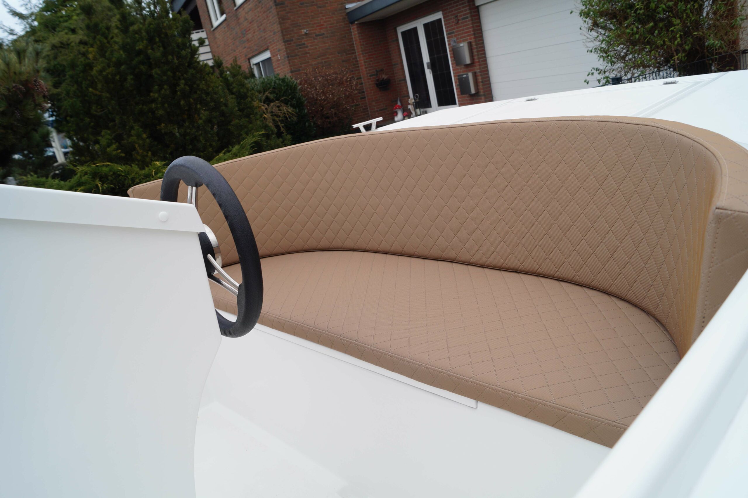 in Perfektion umsetzten. Geben Sie ihrem Schiff den letzten Schliff mit einem edlen Holzfußboden und der Außenlackierung passend zu den Polstern mit Steppung.